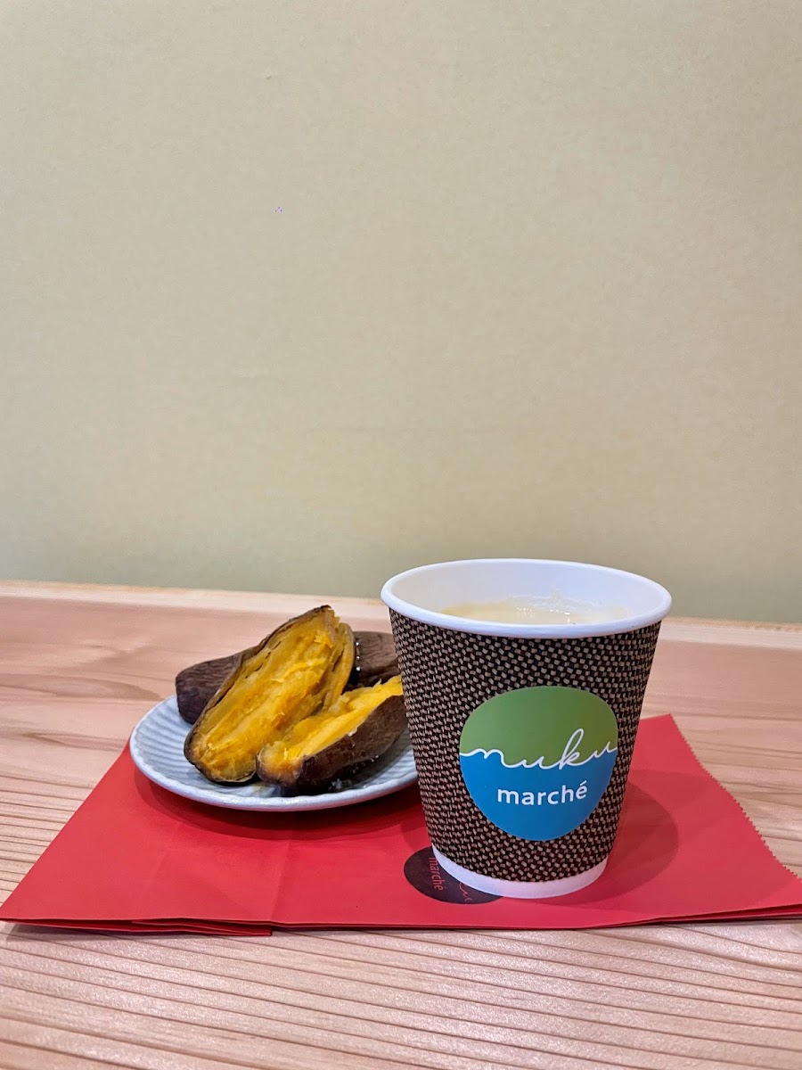For the beverage enthusiasts, MUKU Marche offers unique drinks, including the 焼き芋ラテ (Sweet Potato Latte) made with the finest Awaji Island milk and honey, allowing the natural sweetness of the sweet potato to shine through. If you're in the mood for something refreshing, don't miss out on their 焼き芋生シェイク, an original shake that blends sweet potato and rich milk for an indulgent treat. Guests rave about the balanced sweetness and smooth texture that makes it a must-try combination.